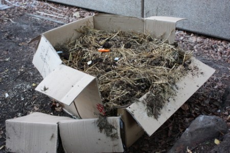 A few cardboard boxes give the compost structure while it starts to rot Posted by G-Berg on August 9, 2010